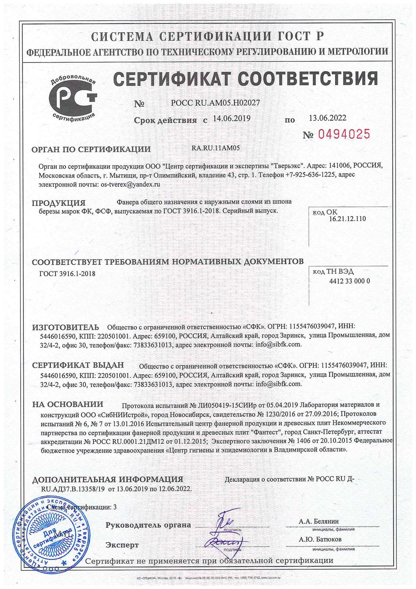 Фанера ФК