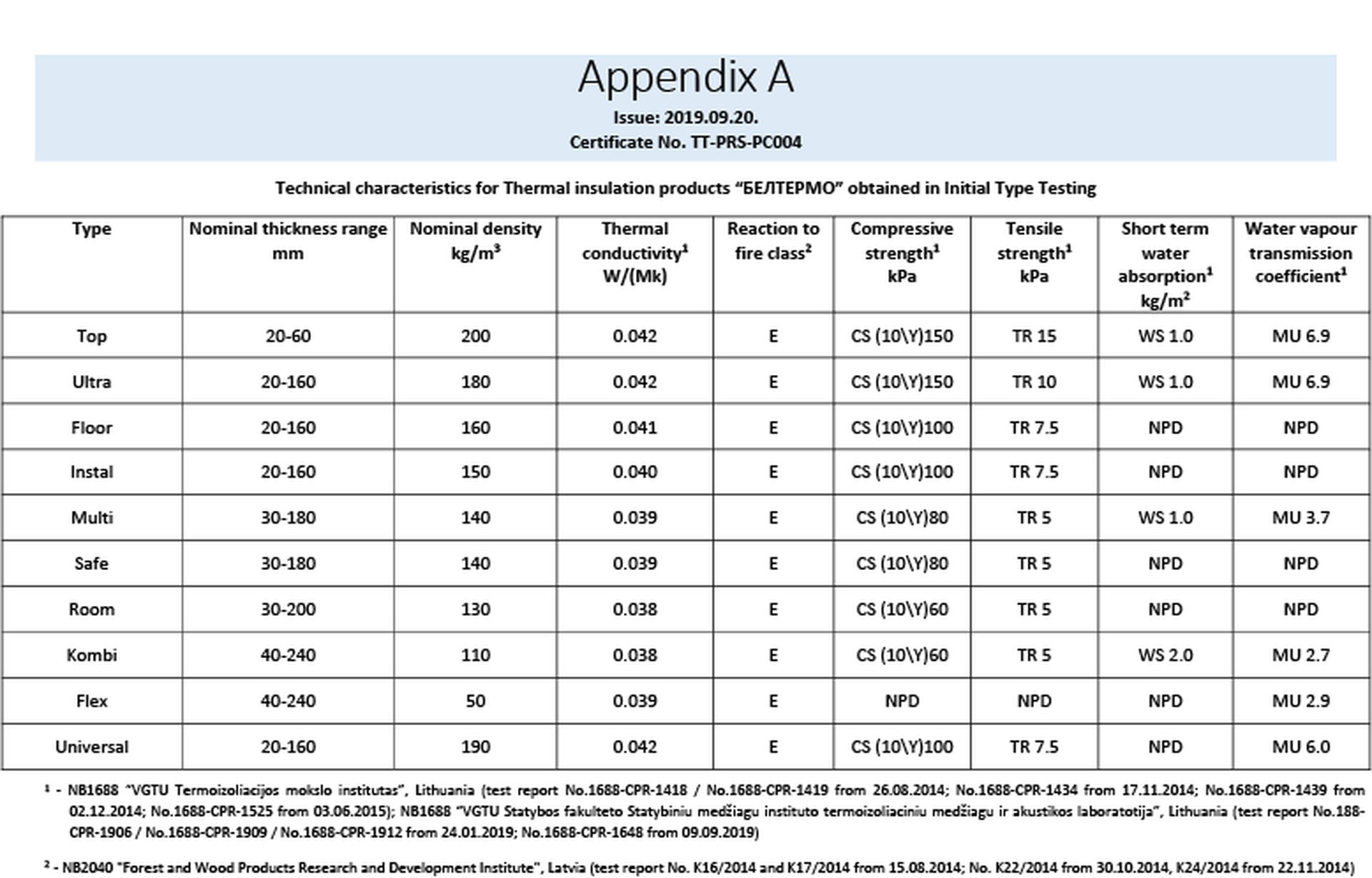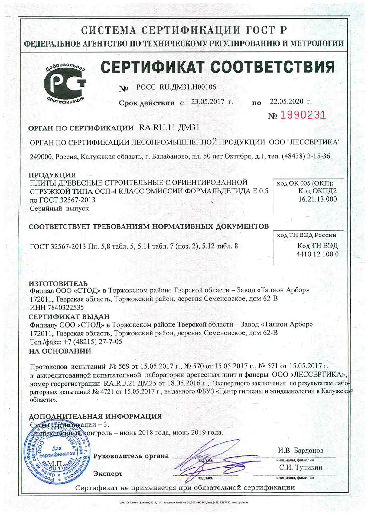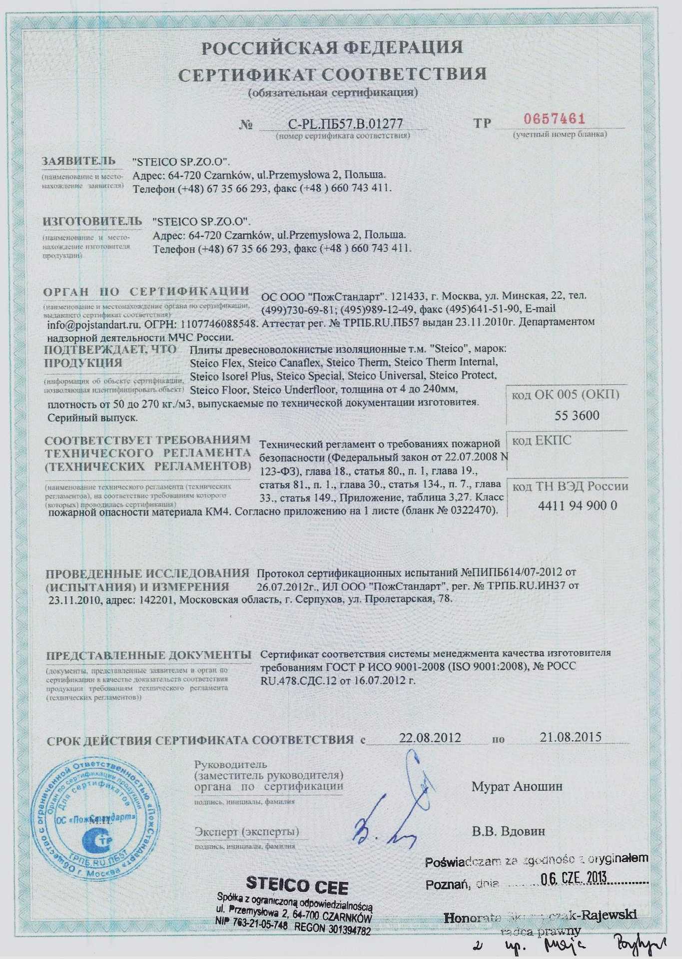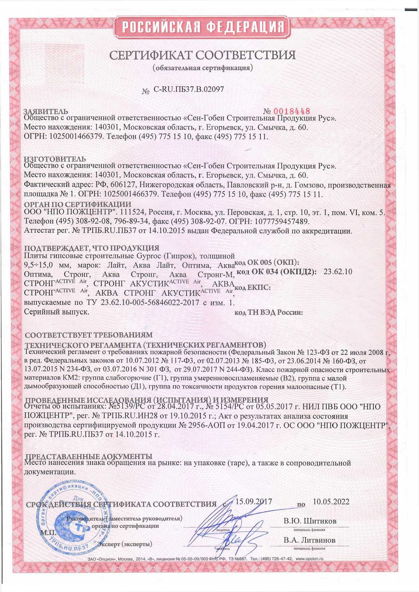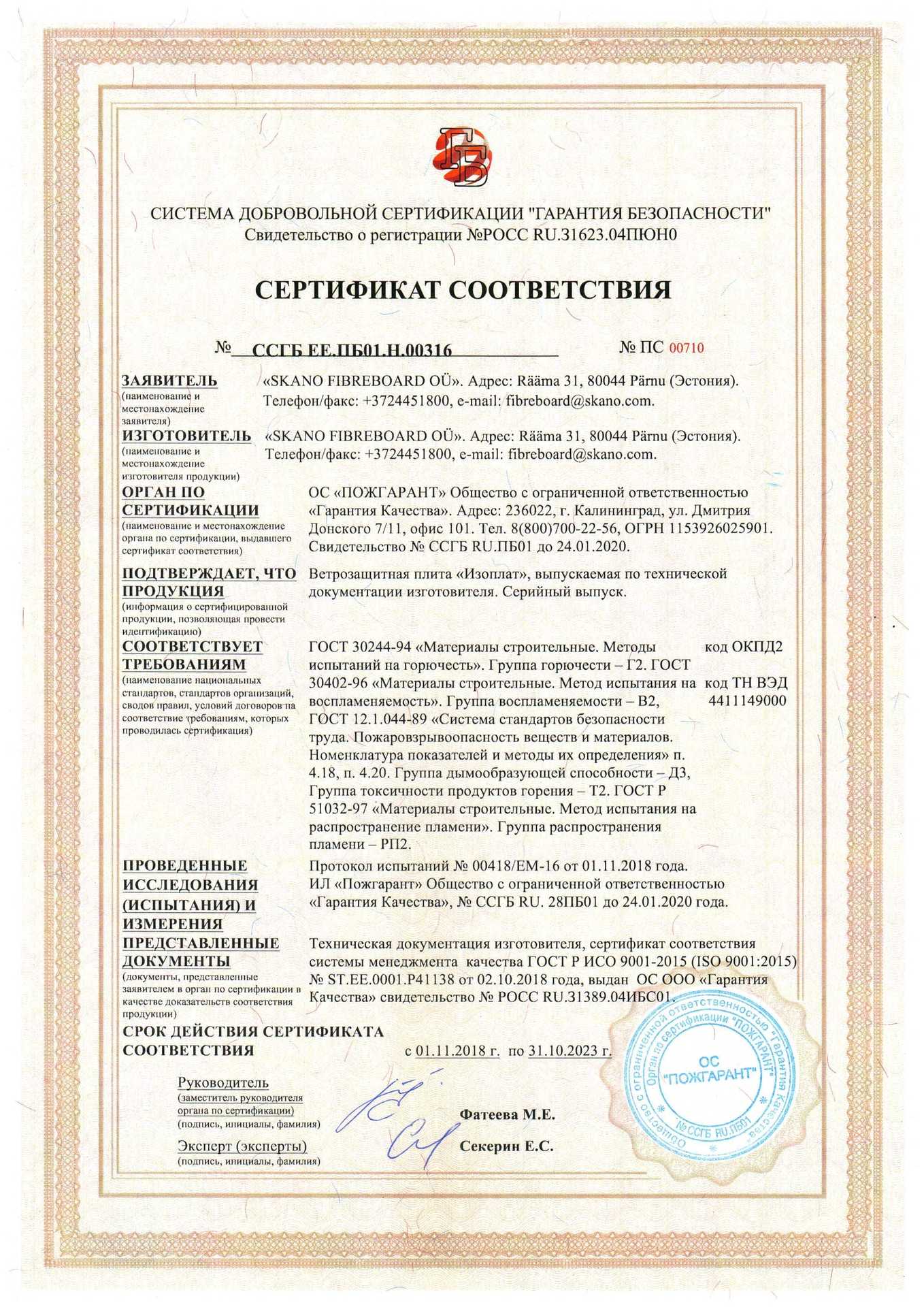 Сертификаты плитных материалов